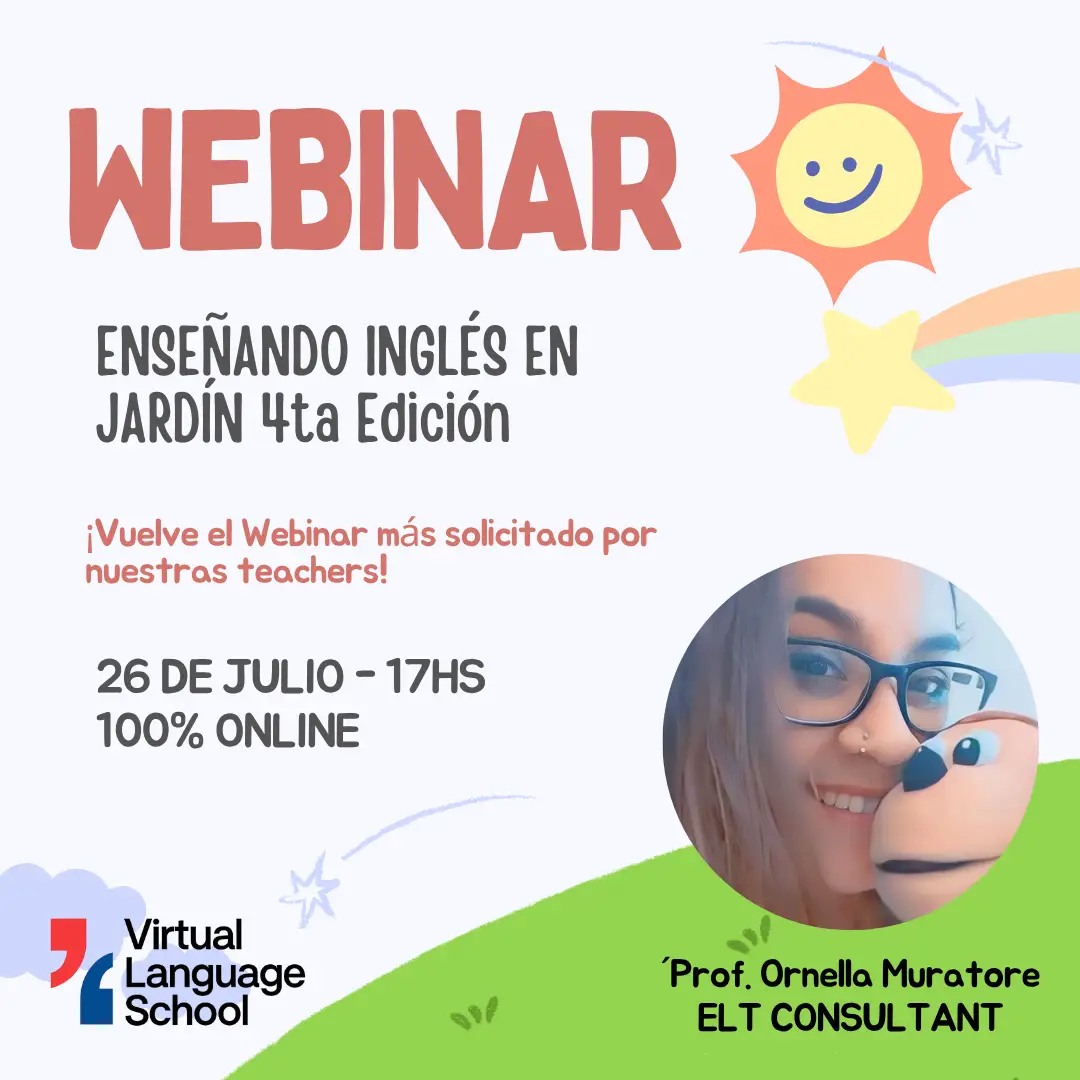 Lanzamos una nueva edición del webinar “Enseñando inglés en jardín”, una propuesta teórico-práctica pensada para docentes de nivel inicial que buscan ideas reales, creativas y efectivas para sus clases.